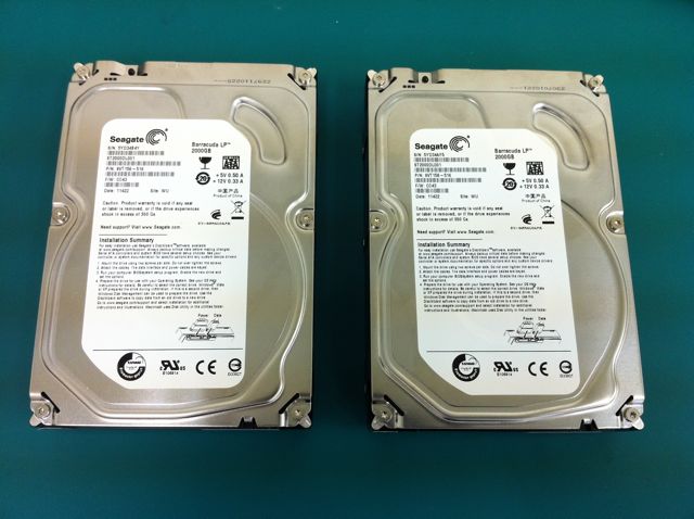 写真は内蔵HDDのみ。他社経由のため、既に筐体から取り出し済みでした。