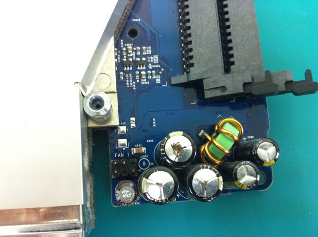 ついでにロジックボード表面にも、目視ではっきりわかるコンデンサの膨張が確認されましたので原因はコレで確定です。