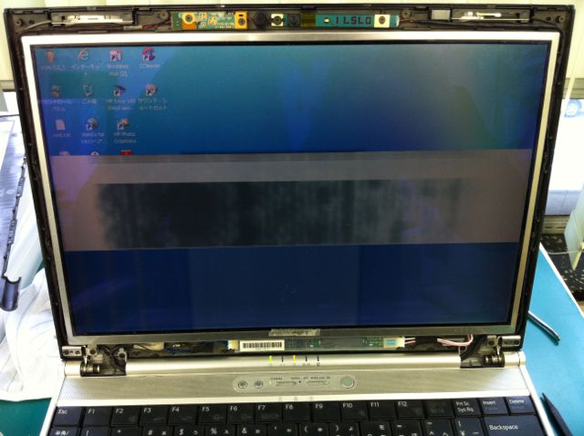 写真で確認できる通り、中心部に妙な帯が入っています。下部も正常表示されていません。
