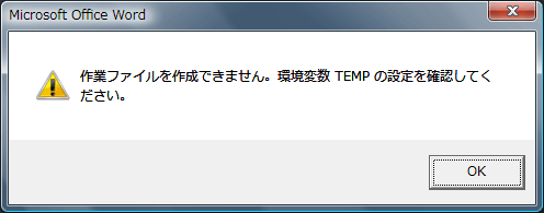 「作業ファイルを作成できません。環境変数TEMPの設定を確認してください。」と、![]()