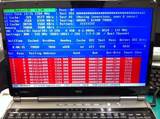 診断したところメモリ故障が原因でした!
